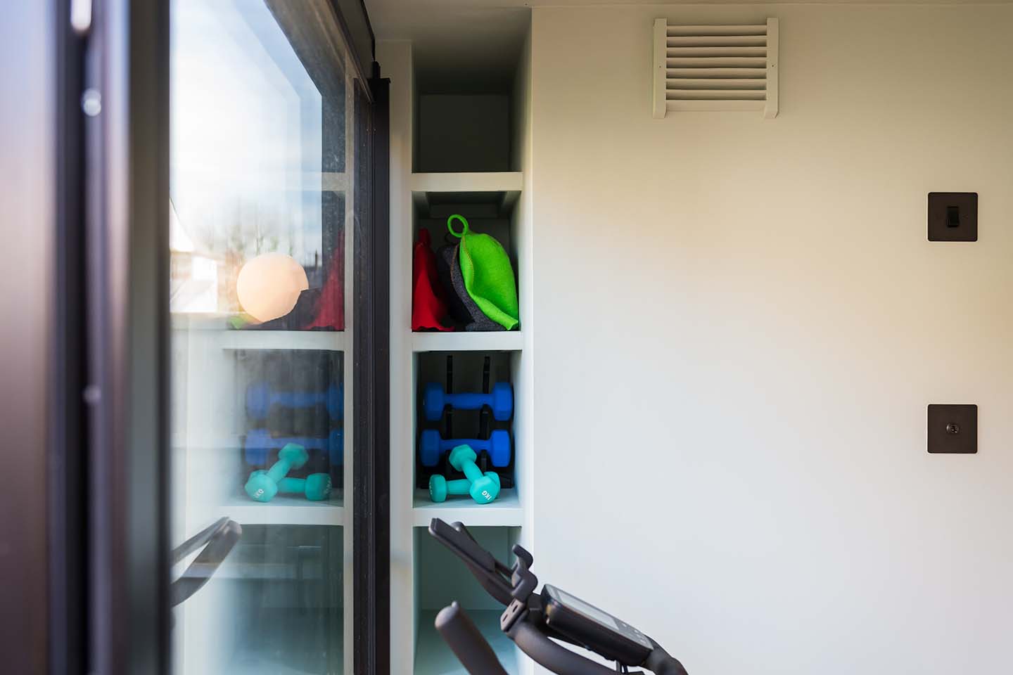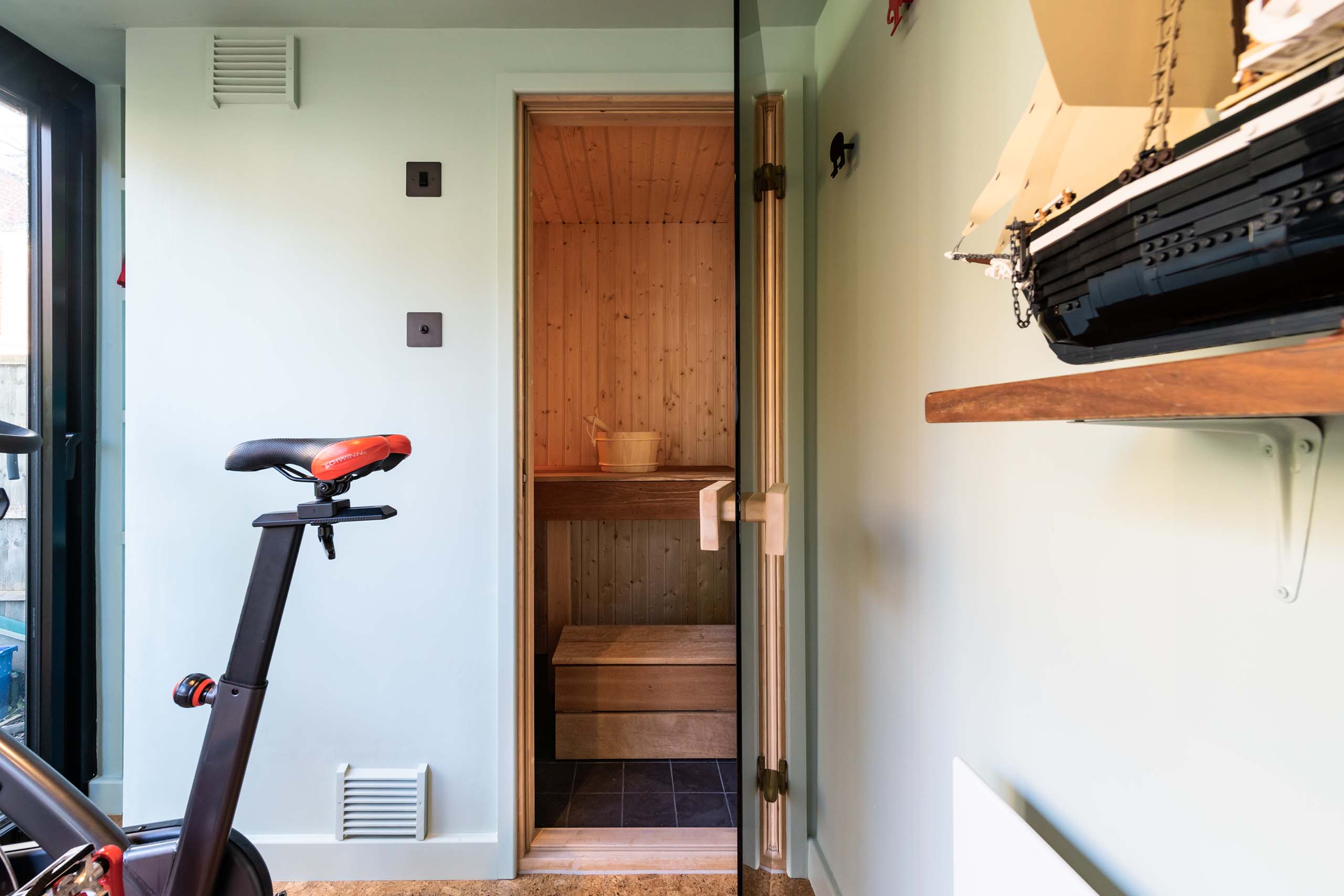 Dream big whatever the size of your garden room. Just look at this compact space. The Foster-Hunt family not only have a sanctuary away from a busy household where they can workout and wind down. They also have a luxury sauna that takes relaxation to five-star levels of indulgence.